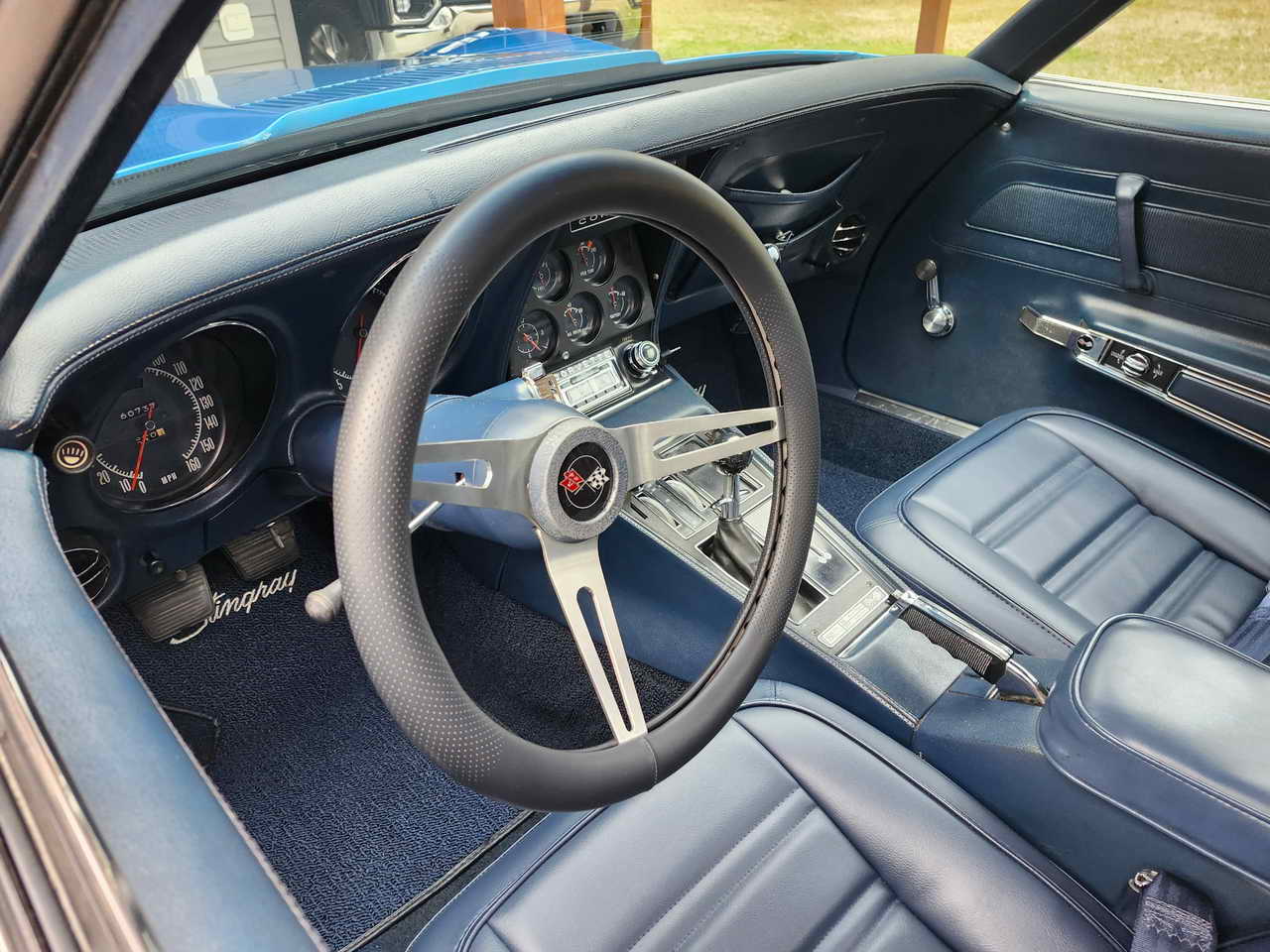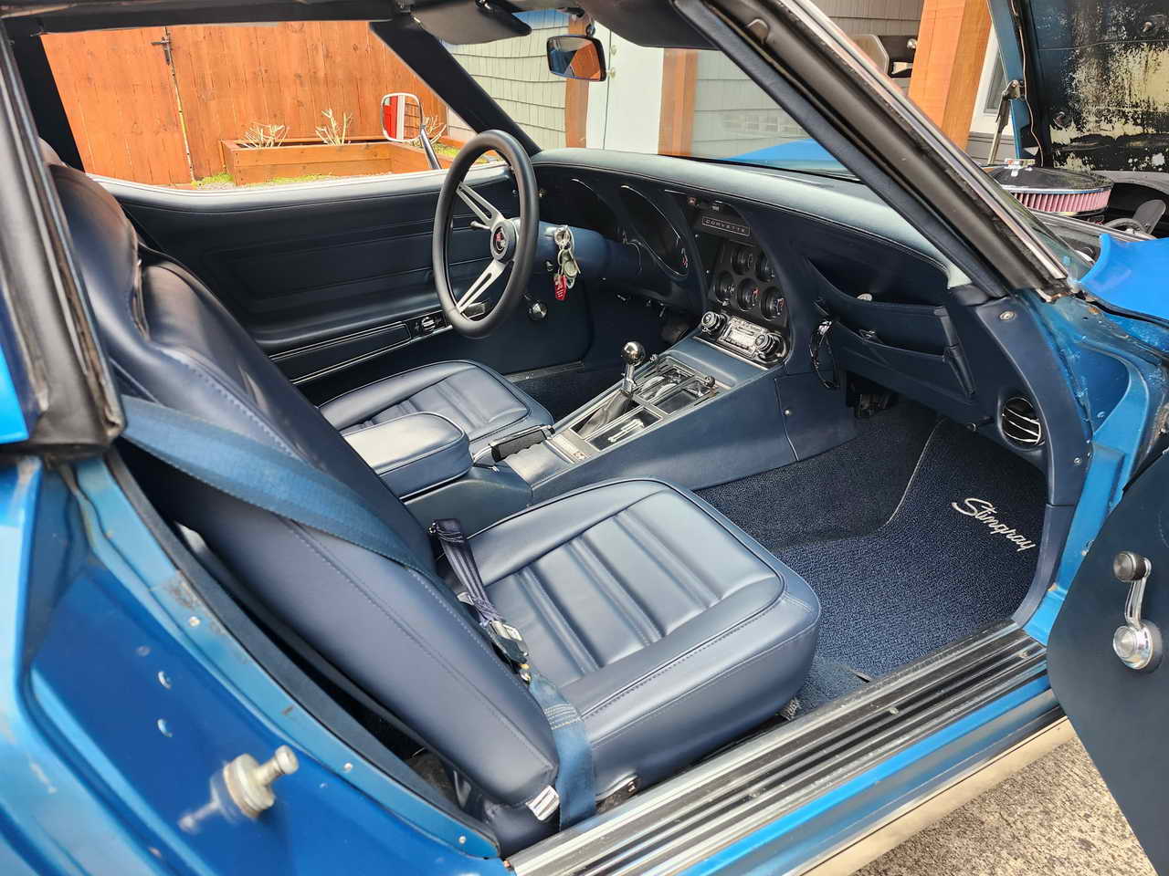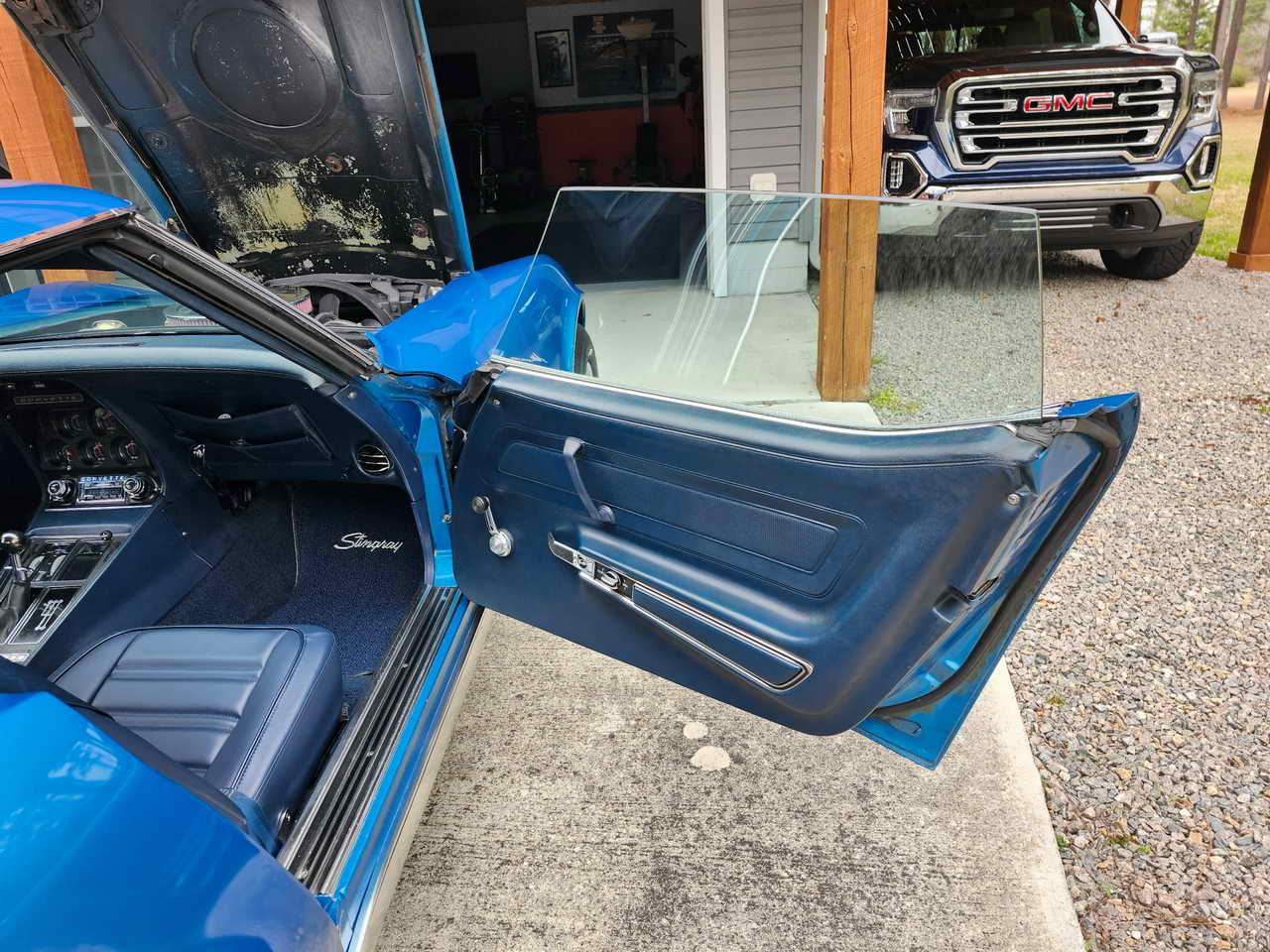 Our offer today is a fine example of the era, a T-Top Coupe endowed with the optional L82 engine, mated with the 4-speed manual transmission, dressed in Blue with Blue interior. Indeed, the HP rating for the RPO L82 was 250, but, with all the mods below, the engine likely pushes towards 300 HP. Mileage is actual and documented at 61K, car having virtually one owner. Quality is exquisite, the paint is original and shines brightly. Interior is all original too, with the exception of new correct seats. Present owner, a long time enthusiast from NC, recently did a lot of work as below: