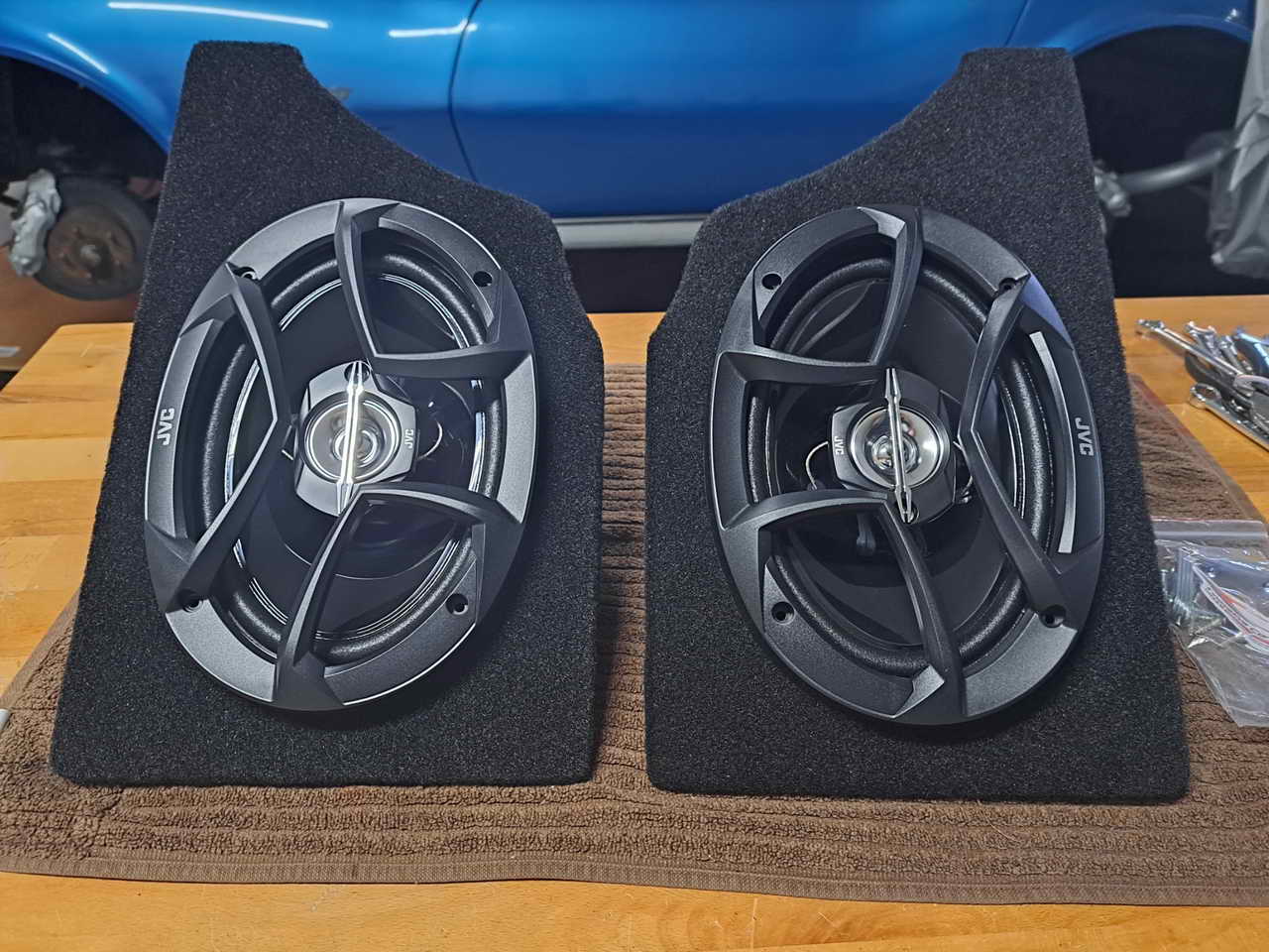 Install new Retro radio with custom speaker boxes and JVC 200 watt speakers