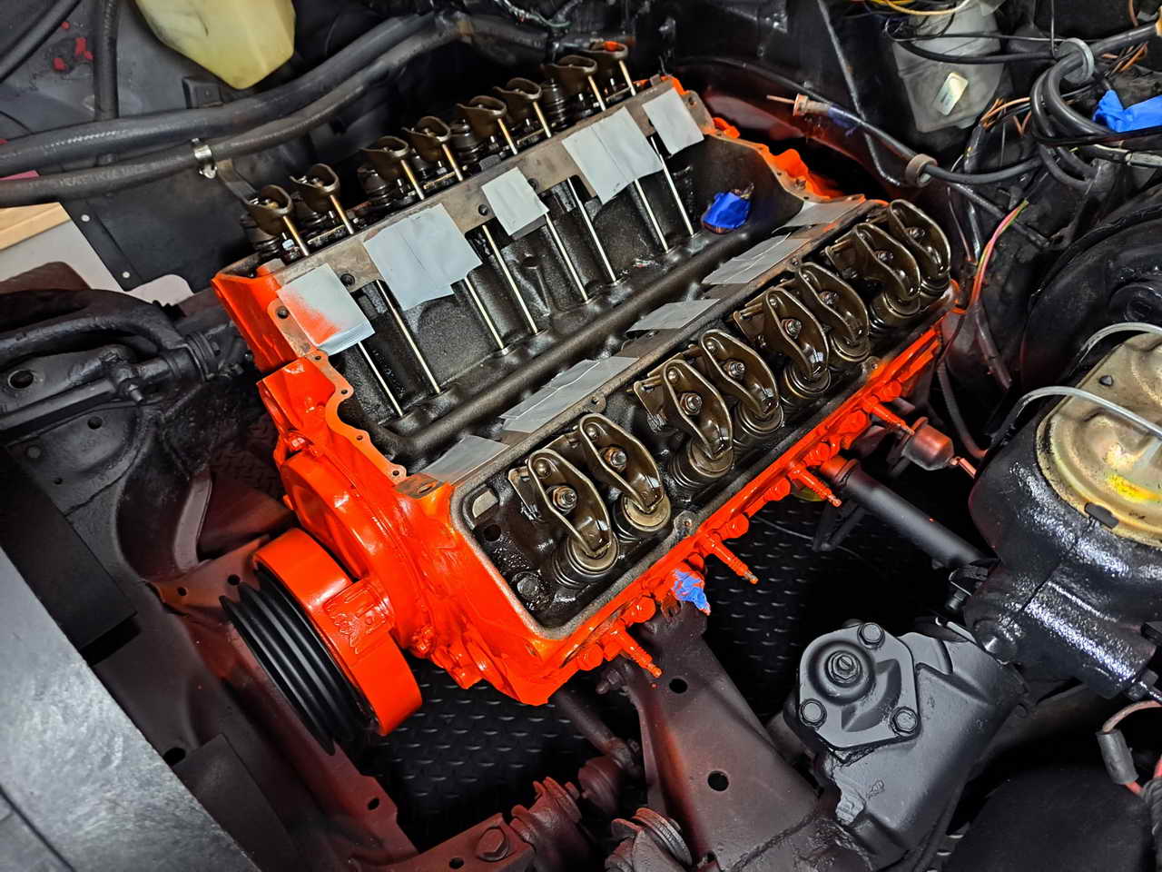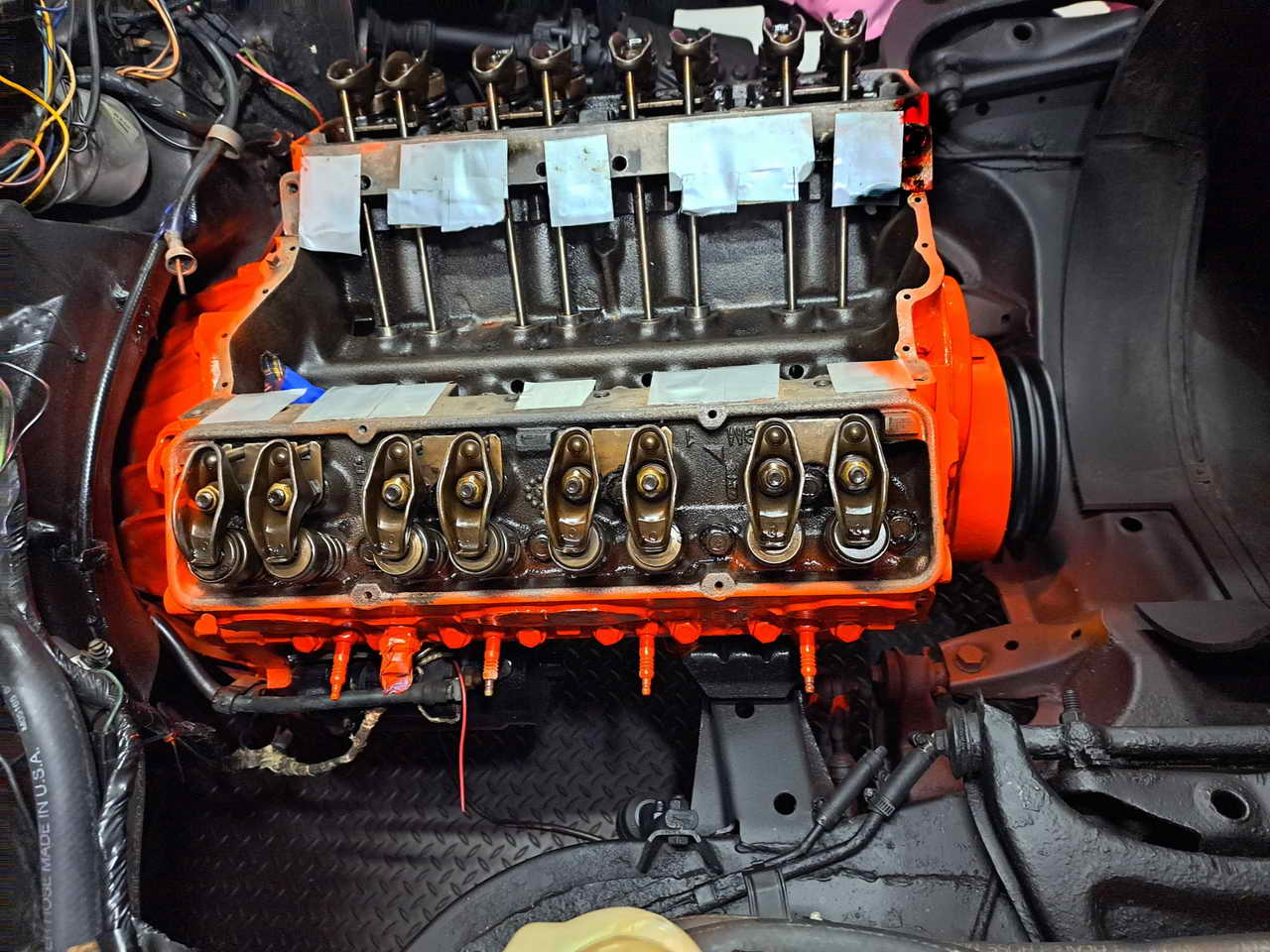 Mount OEM reconditioned valve covers, 2 cork/rubber Fel Pro gaskets