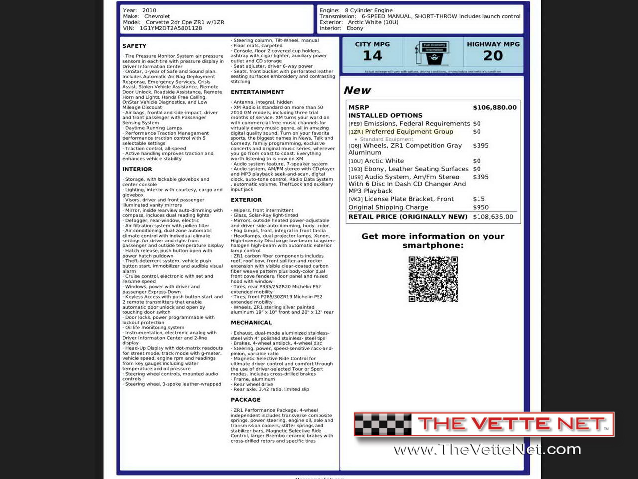 Exterior Color:ZR1 Arctic White