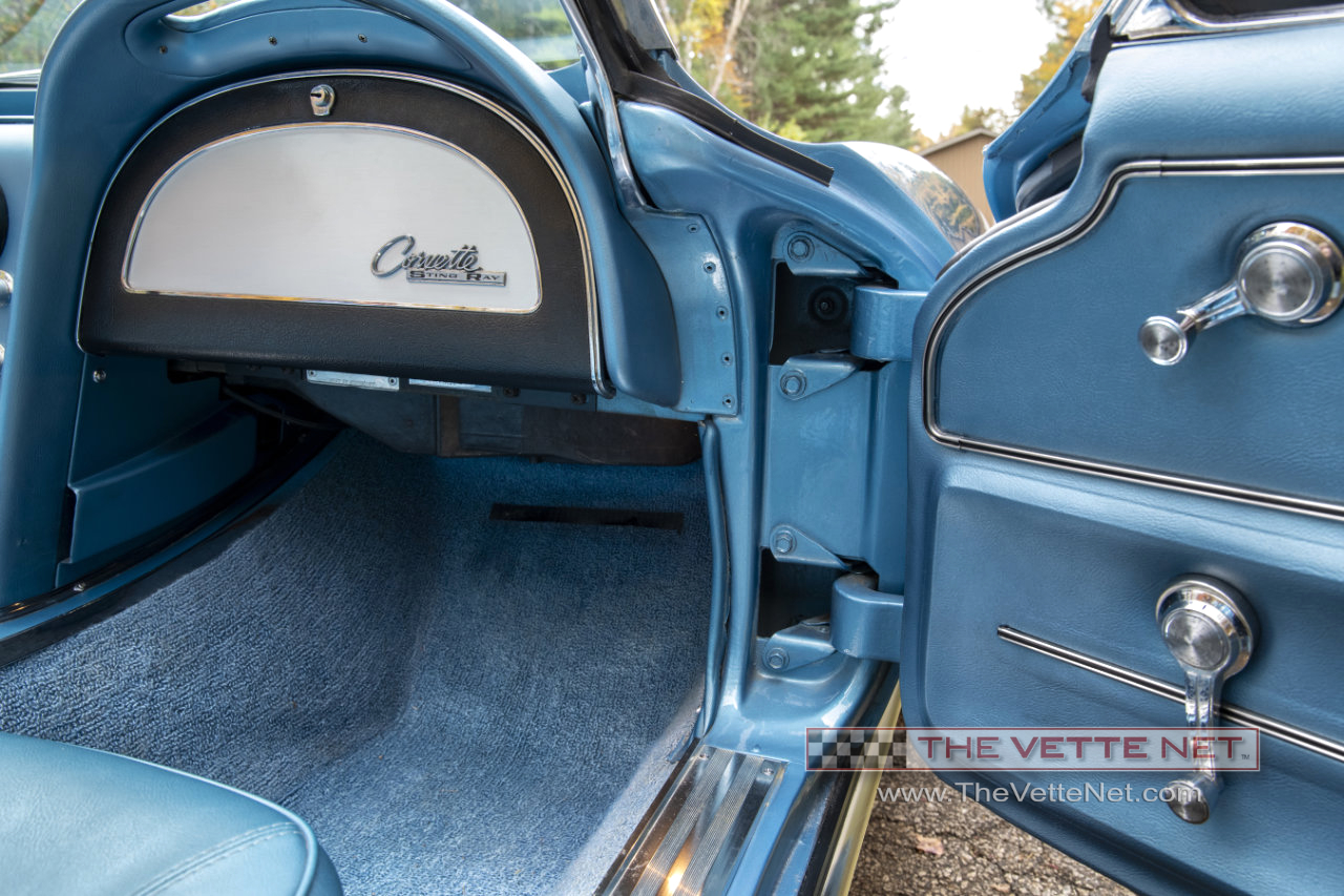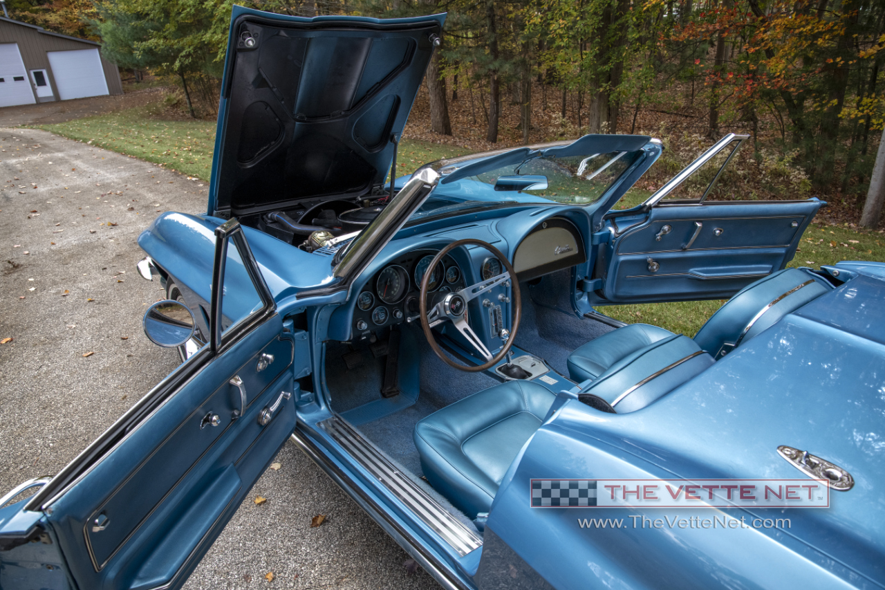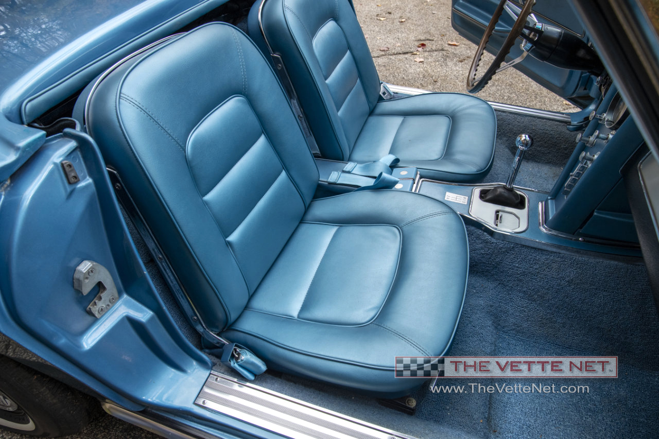 As you can see, the Nassau Blue paint (code correct) with the Blue interior definitely grabs your attention. This numbers matching small block Corvette convertible is located in MICHIGAN.