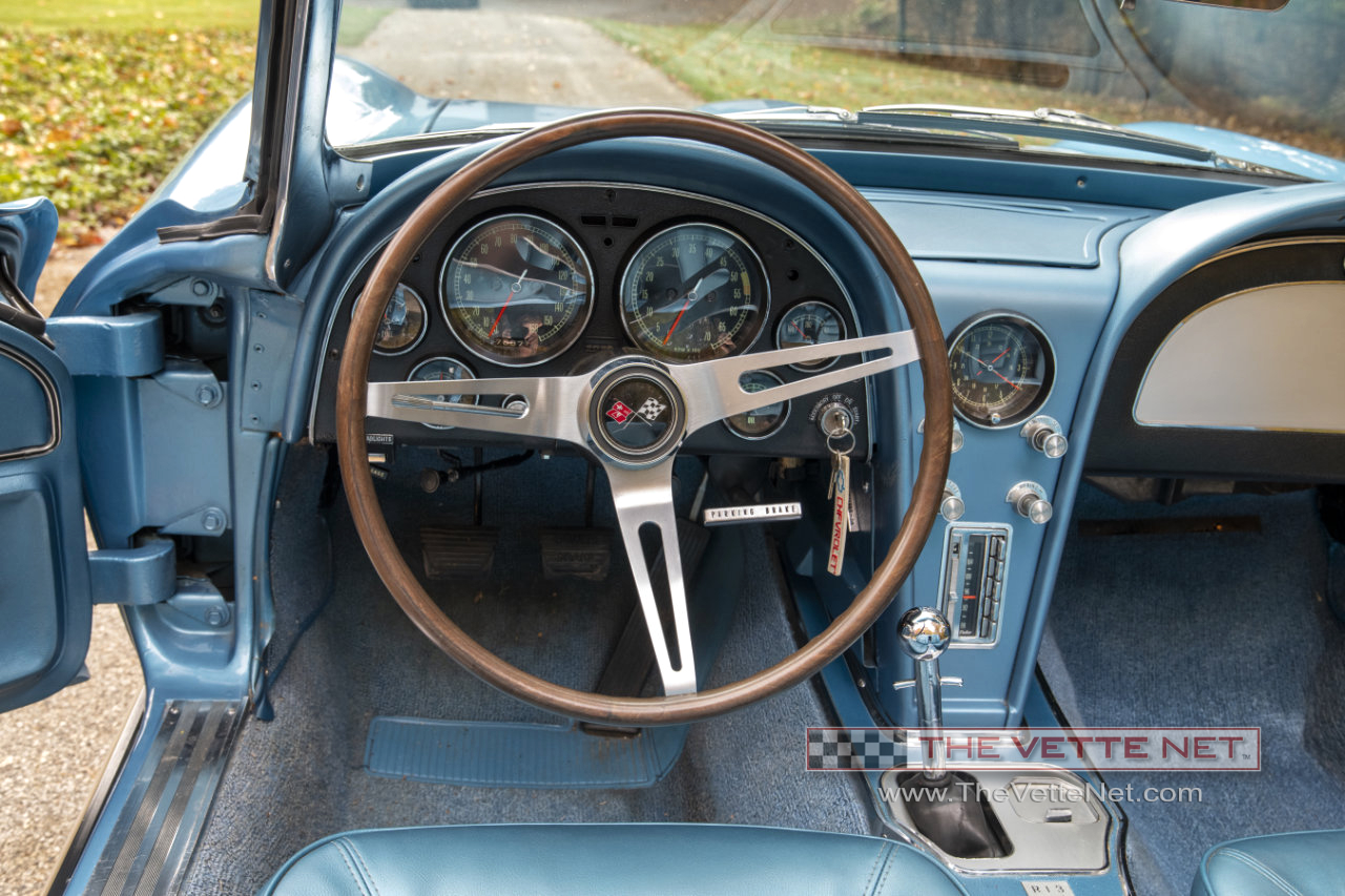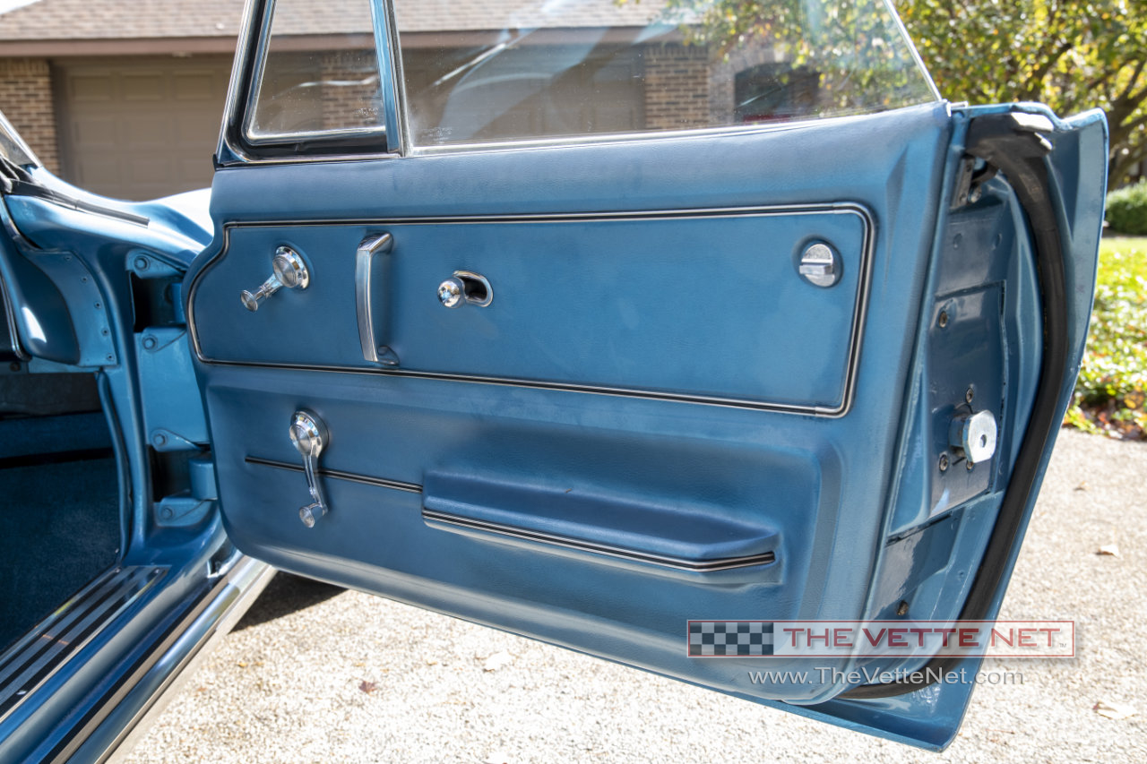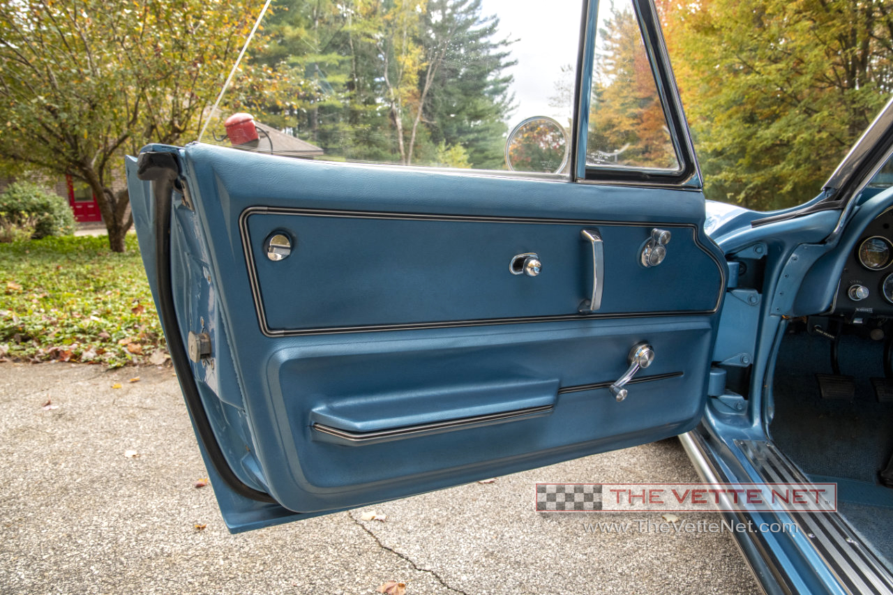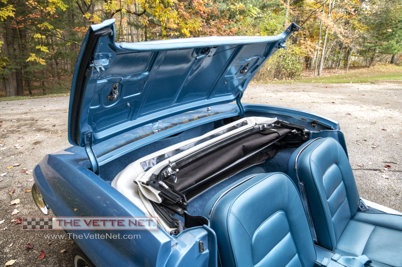 As you can see, the Nassau Blue paint (code correct) with the Blue interior definitely grabs your attention. This numbers matching small block Corvette convertible is located in MICHIGAN.