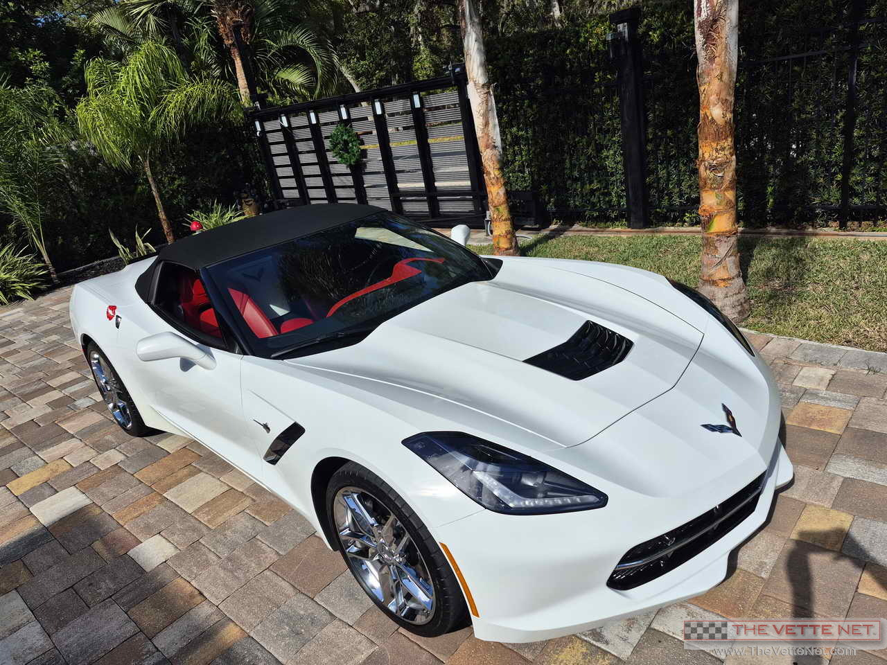 We are pleased to bring to your attention a fine example of the last of seventh generation of Corvettes (2019) dressed in the original (1953) color combo: White with Red interior and Black top. With under 6000 miles is in excellent, like-new condition. It lived all its life in Florida and came very well equipped from the factory with: