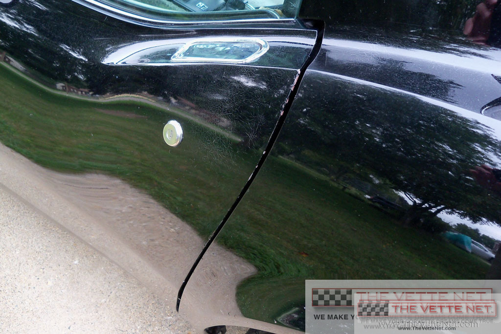 Unfortunately, the paint has checked extensively on the hood and front fender tops. You will also see some paint checking near the door handles. The front and rear bumpers and headlight covers were recently repainted and look very nice. Other body panels on the Vette look good.