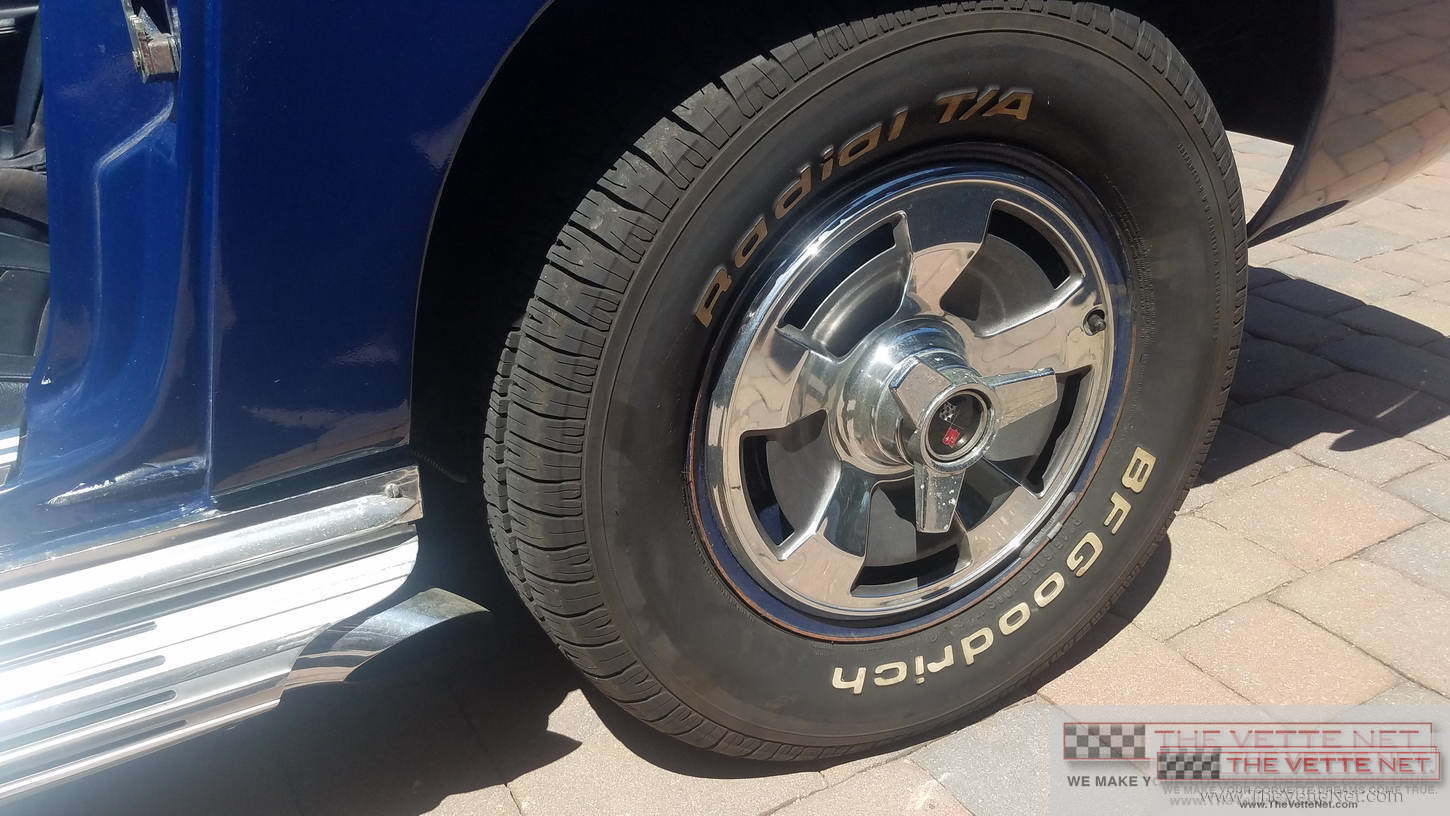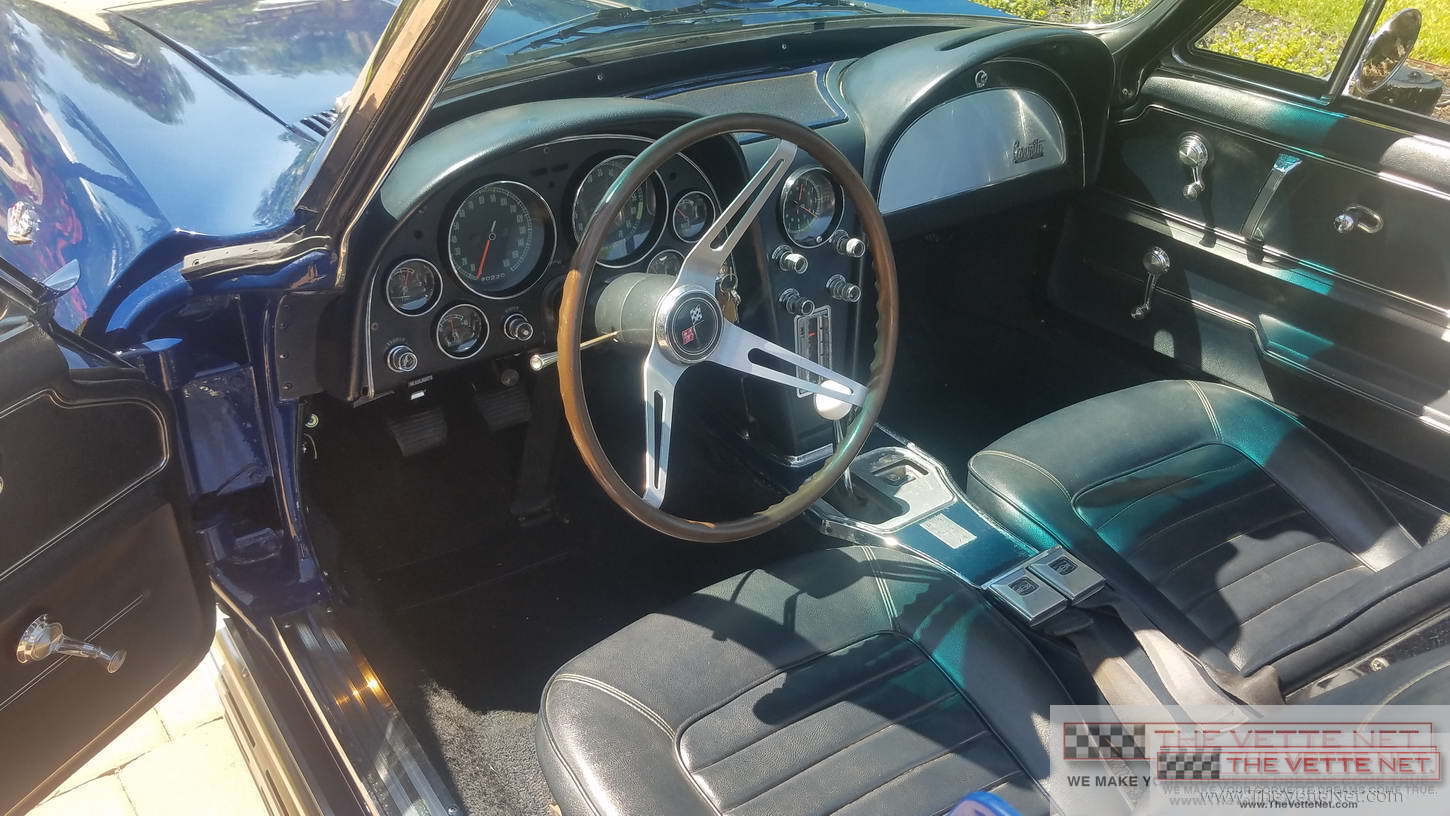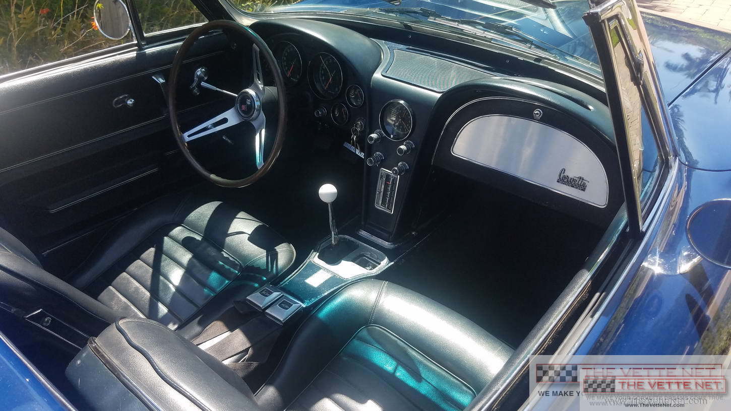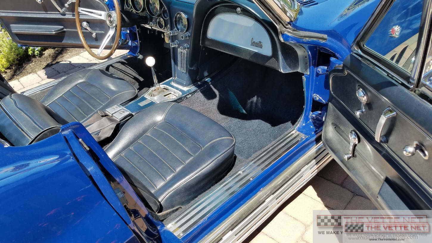 It is powered by a newer GM 350 engine which replaced the factory 327/350 L79 the car came with. There is no information on the HP rating, but it is believed to be around 300 with the help of the high-rise manifold and Flowmaster headers. Transmission is a 4-speed manual which performs flawlessly. Sorry, no power options on this hot rod! Check out the factory correct side pipes! Interior appears also redone recently and is the correct Blue Vinyl, trim code 418. Dash, carpet, door panels… are all correct. All instruments and gauges are functional with the exception of the clock. Undercarriage is clean.