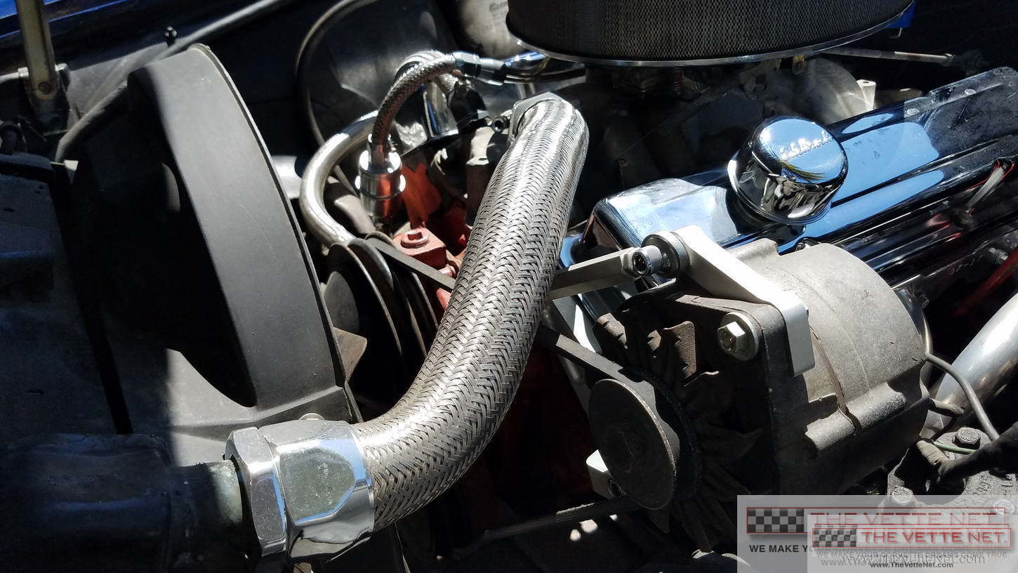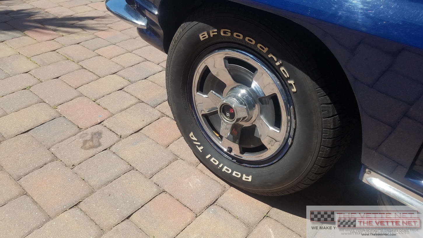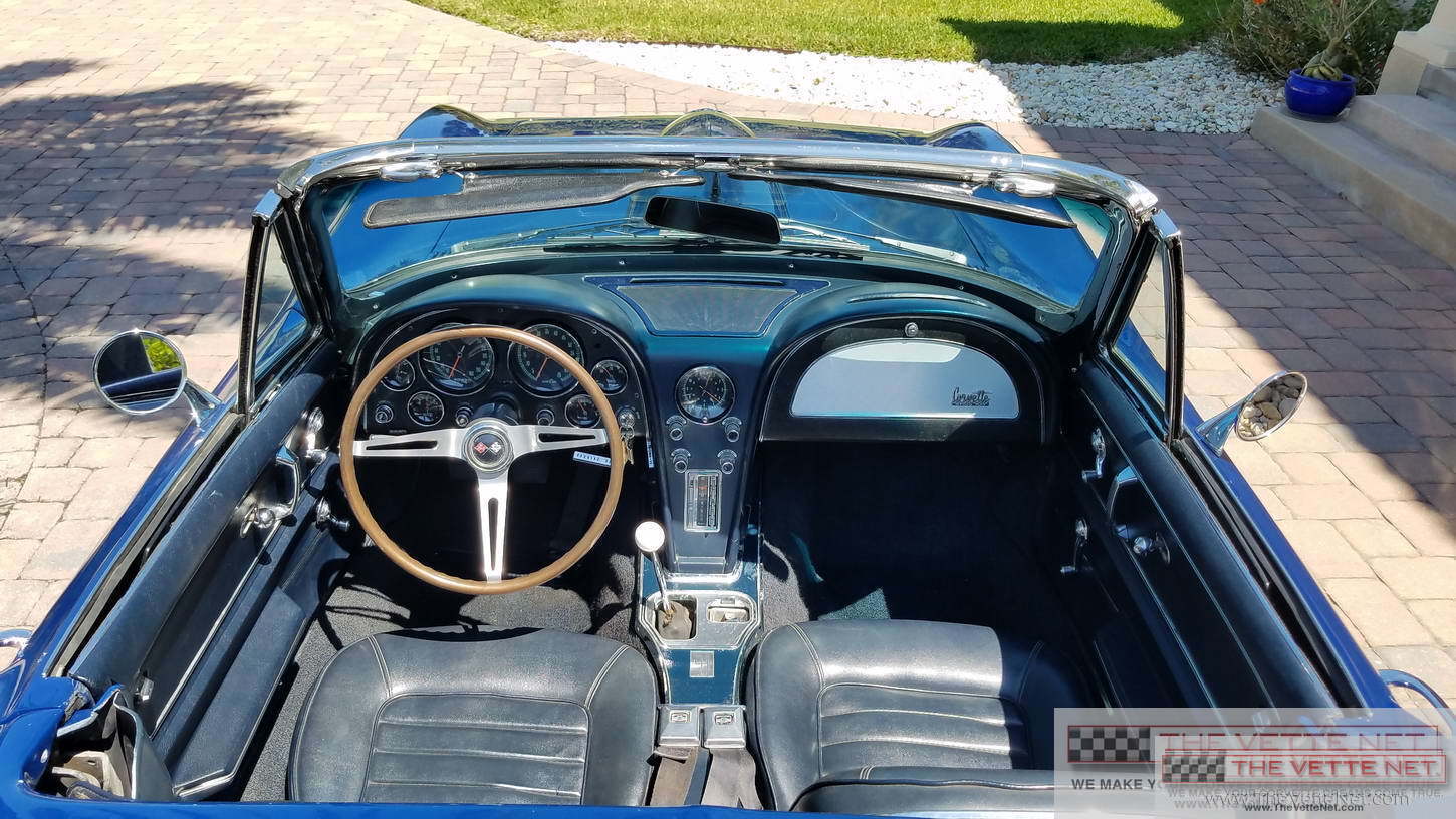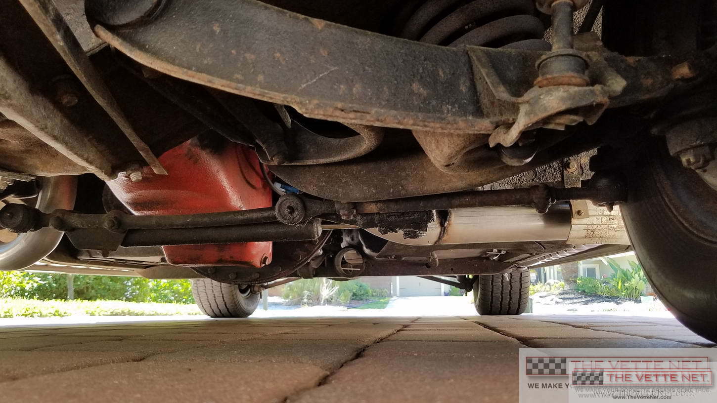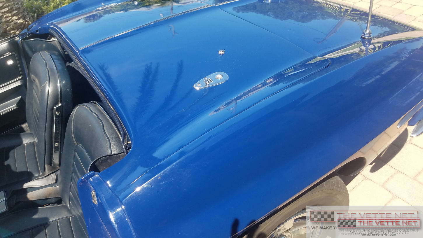 It is powered by a newer GM 350 engine which replaced the factory 327/350 L79 the car came with. There is no information on the HP rating, but it is believed to be around 300 with the help of the high-rise manifold and Flowmaster headers. Transmission is a 4-speed manual which performs flawlessly. Sorry, no power options on this hot rod! Check out the factory correct side pipes! Interior appears also redone recently and is the correct Blue Vinyl, trim code 418. Dash, carpet, door panels… are all correct. All instruments and gauges are functional with the exception of the clock. Undercarriage is clean.