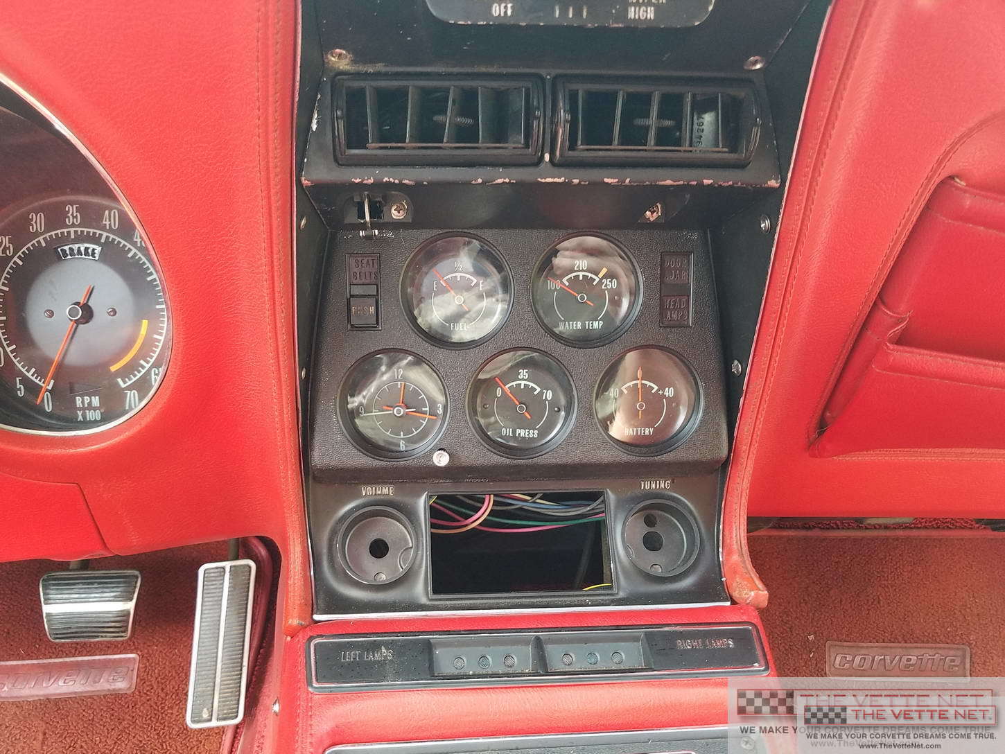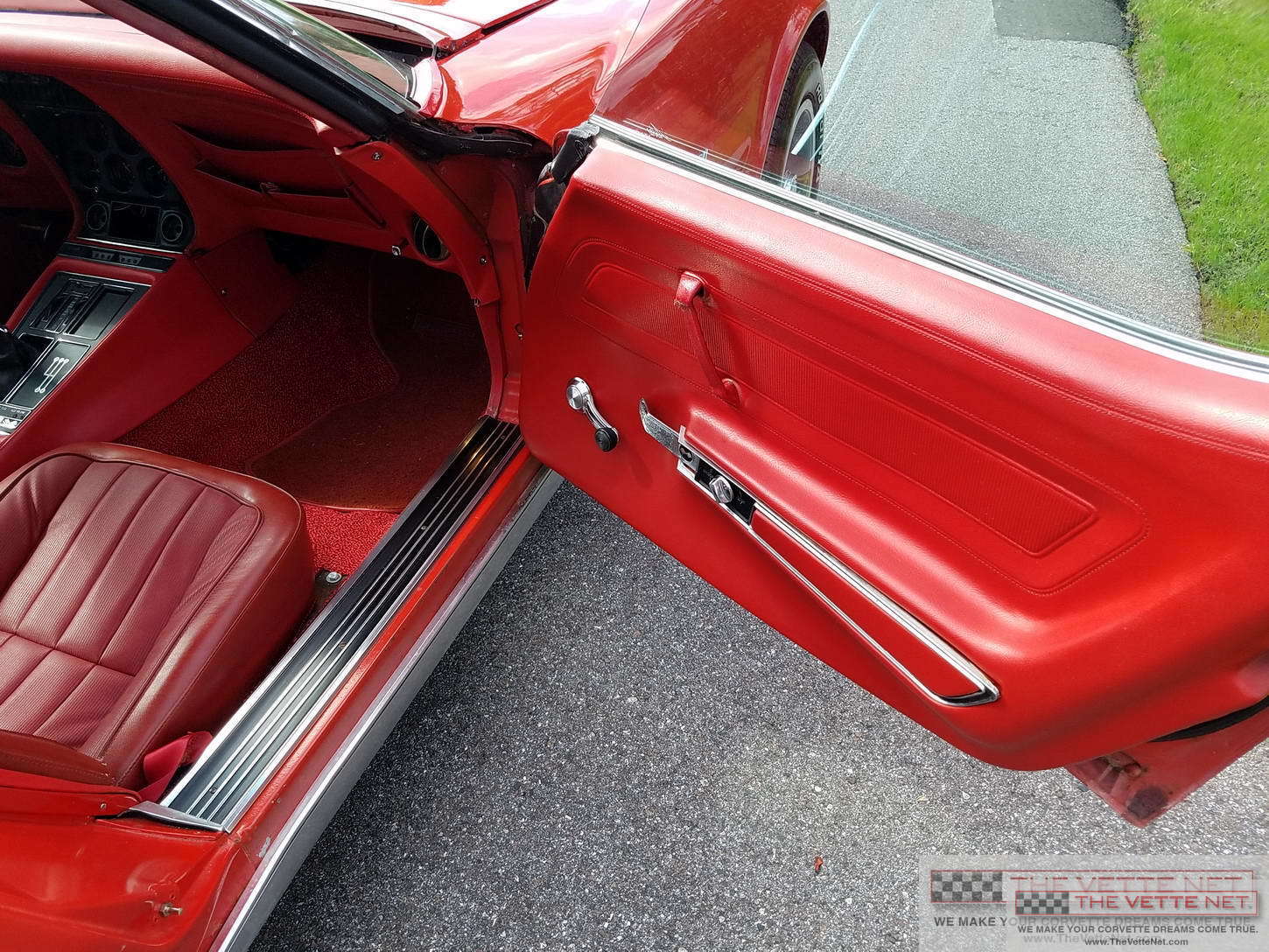 It is evident that the car sustained a thorough restoration, since pretty much appears that was gone through. Note the near perfect and correct Red paintjob, code 974 as on the trim tag, mated with the fresh Red interior, code 407.