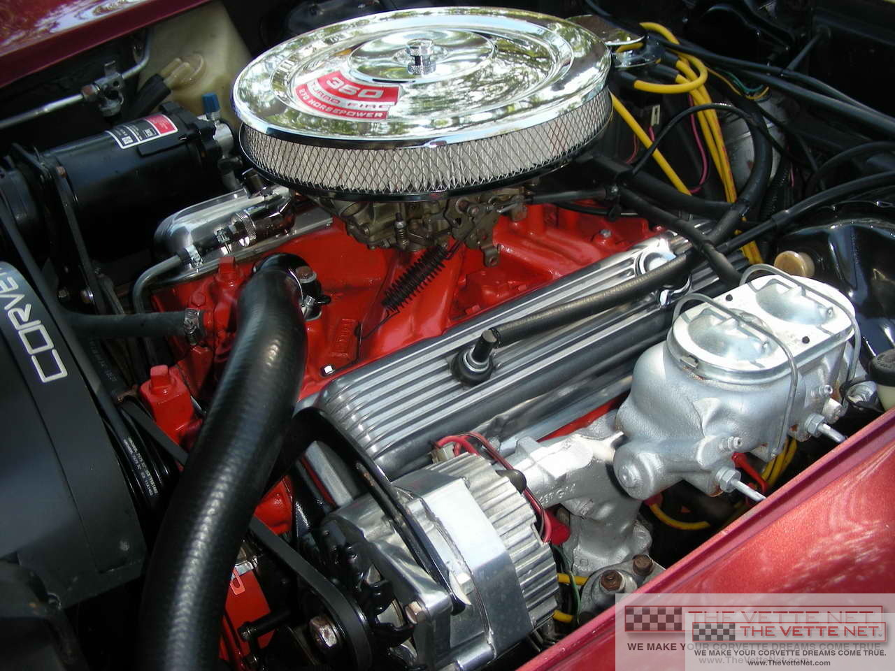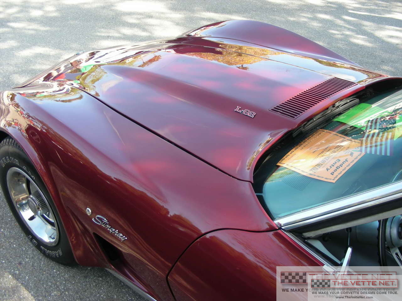This particular model has a recent paint job in the original color, Dark Red, RPO 74 with a stunning and rare deluxe Silver leather interior. The L82 matching numbers engine was rated at 205 HP was a rare option in that year with only 2372 made. When we add the manual transmission with on only 1057 made, mated only the the L82 engine, we realize this is a very rare combination.