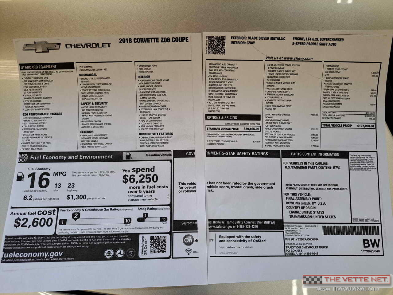 We are pleased to bring to your attention what is, likely, one of the most representative models of the C7 generation (well, besides the ZR1), a 2018 Z06 Coupe with extremely low miles, 1375, also equipped with a multitude of options which brought the MSRP to $107,020, including the very coveted Z07 , the ultimate performance package. Factory equipment as follows: