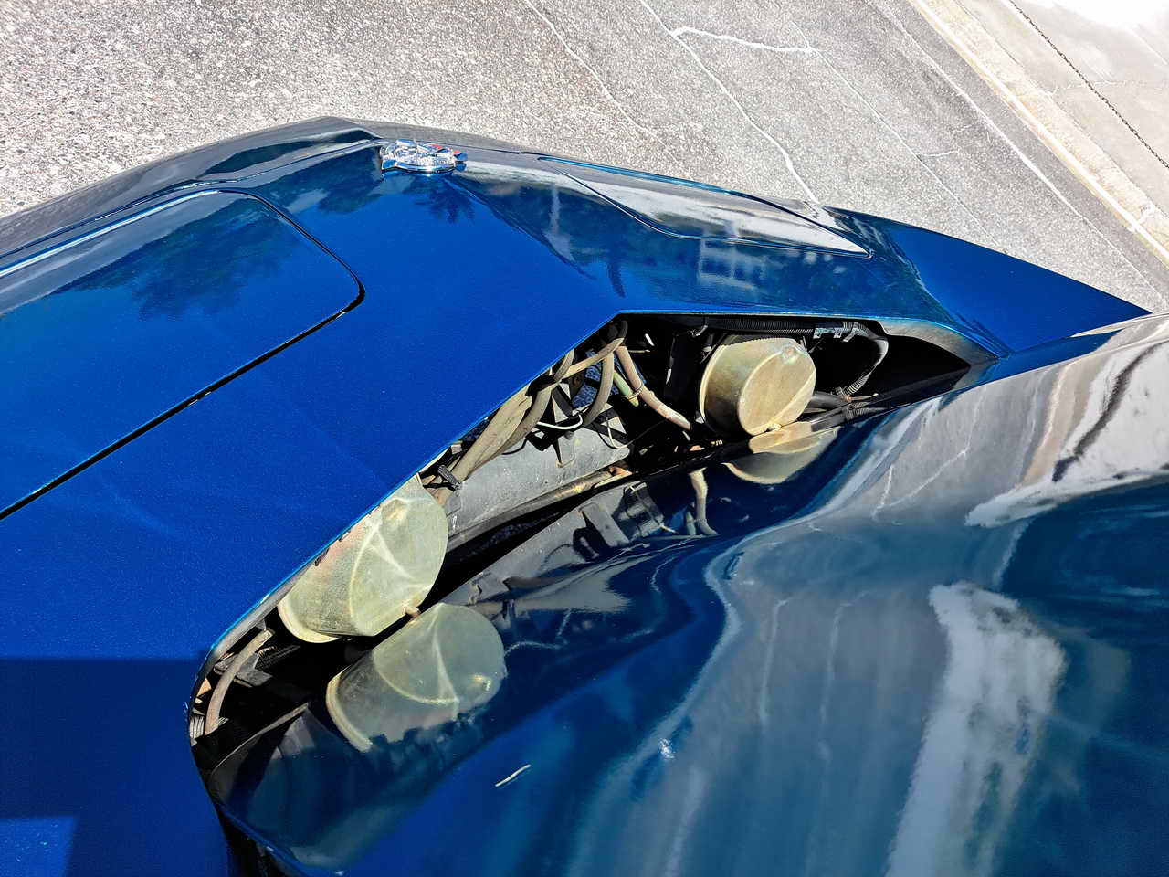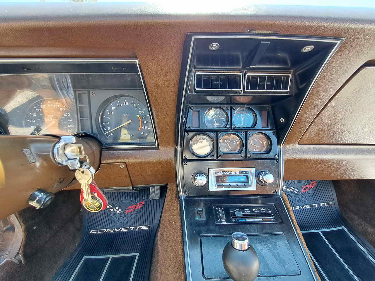 Recently, a complete set of new carpet was installed with additional Dynamat sound and heat insulation and a new center console. Sound comes via a newly installed classic Corvette-style digital radio with new speakers and functional power antenna. All gauges and instruments are functional, including factory clock, horn as well. It is equipped with tilt-tele steering column, functional rear window defogger and power windows. It comes with two sets of keys, plus locking gas cap.
